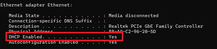 If DHCP Enabled is set to Yes that means the network has DHCP enabled.